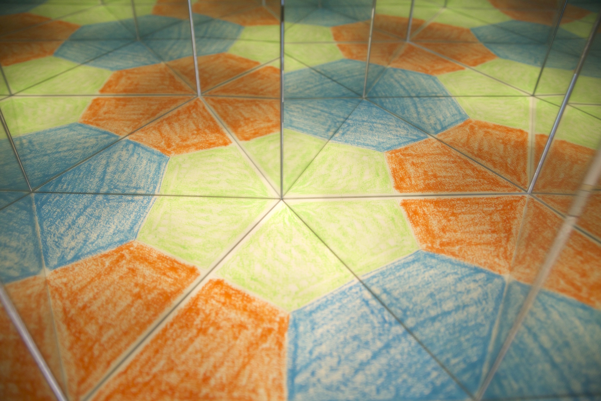 There are three completely symmetrical tilings made out of one kind of regular polygon, and you can make them all with mirrors.
